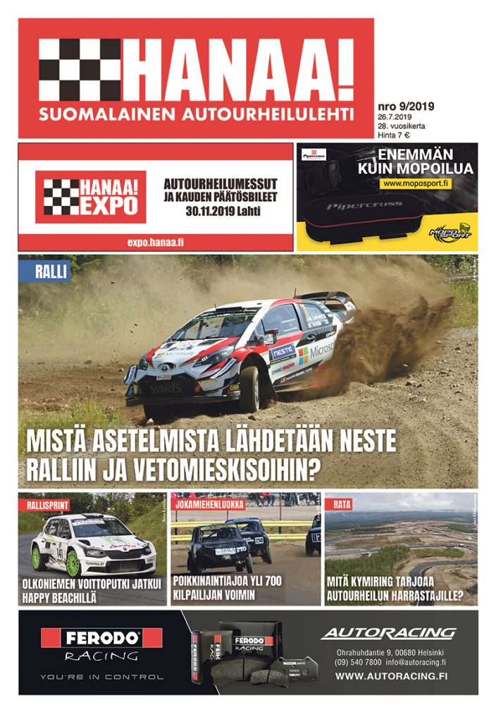 Hanaa 9/2019 ilmestyy 26.7. Tarjolla paljon luettavaa: Neste Rallin ennakkokuviot. Tiukkaa taistoa tiedossa. Vetomies-kisan asetelmat. KymiRing on valmistumassa. Mitä se